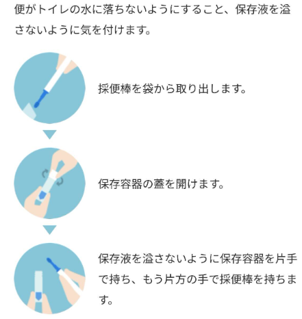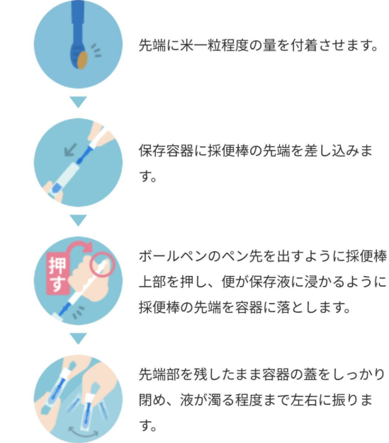 便の表面をなぞるのではなく、便の中に棒を差し込んで採取するという点です。