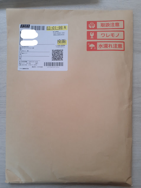 登録翌日に「発送しました」のメールが届き、ヤマト便で2日後に自宅へ到着。
