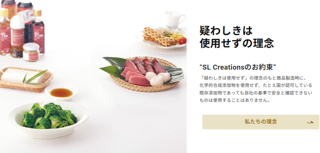 SLクリエーションズは「どこよりも安心・安全」そして「どこよりも美味しい」食品の開発・販売にこだわり、宅配、通販事業などを行っています。